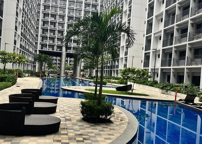 プールを提供する寝室1室のShore 2 Residences By Casa Stellar マニラ市は、The Galeon Museumから徒歩でわずか5分です。 ビジネスでもレジャーでもWiFiを利用することができます。